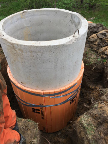 Vonkajšiu časť kmeňa sa odporúča ošetriť zváranou hydroizoláciou alebo bitúmenom, ale materiálom by nemala byť strešná krytina, ale navrhnutá na prácu v zemi. To poskytne väčšie šance na udržanie integrity krúžkových kĺbov počas sezónnych pohybov zeme, ak k nim dôjde.
