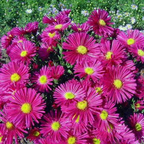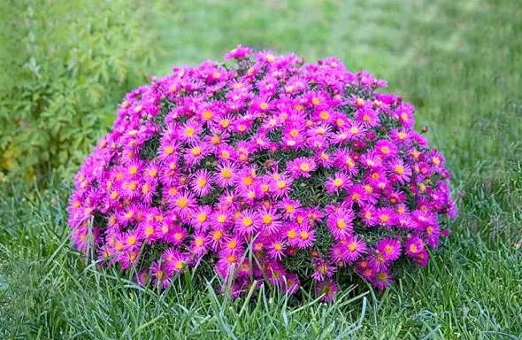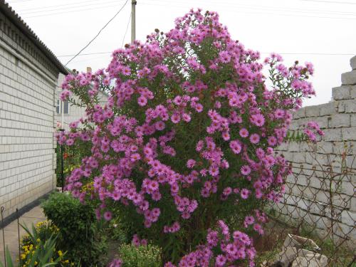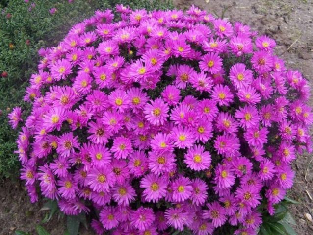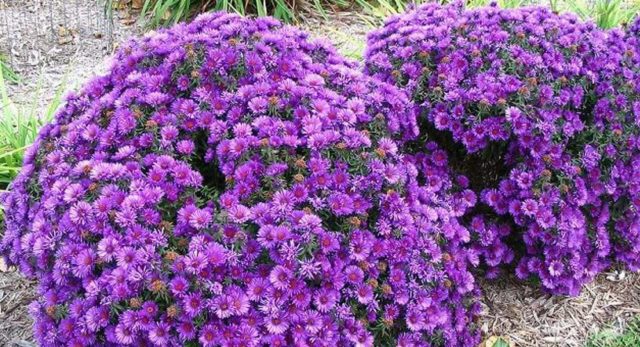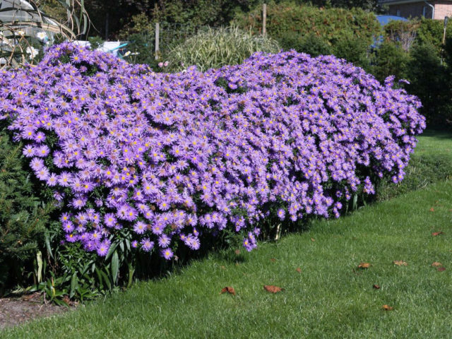 Trvalé asterové kríky sú husto pokryté jasnými kvetmi, takže sa perfektne hodí do dizajnu každej záhrady