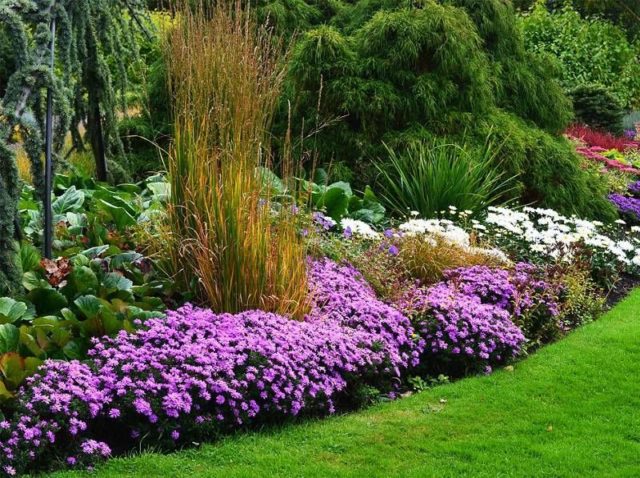 Astry kríkov sú kombinované s ozdobnými obilninami