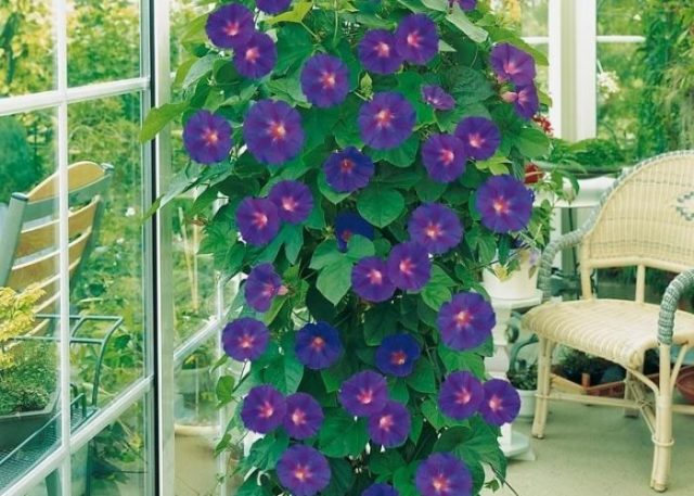 Ako vidíte z fotografie, Ipomoea Purple je pomerne kompaktná a nezaberá veľa miesta, pretože rastie vertikálne.