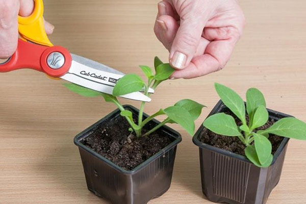Pestovanie sadeníc v spoločnej nádobe zahŕňa zber. Táto práca je plánovaná, keď sa na rastline vytvoria 2-3 pravé listy, to znamená za mesiac od okamihu klíčenia.
