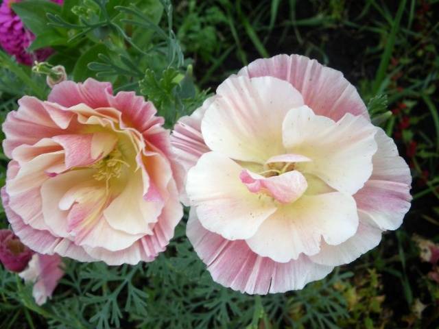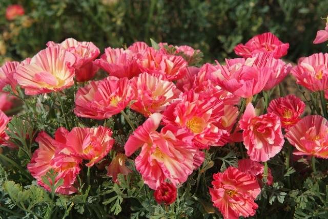 Vo voľnej prírode sú kvety Eschscholzia zlaté farby. Okvetné lístky v množstve 4-6 kusov sú usporiadané vo forme misy. Ale v súčasnosti sa vďaka tvrdej práci chovateľov objavilo veľa nových odrôd, ktoré sa líšia nielen rôznymi farbami, ale aj kvetenstvami. Existovali odrody s dvojitými a dvojitými kvetmi oranžových, žltých, červených, bielych, vínových tónov. Pozrite sa na fotografiu, aké krásne sú pestované zo semien Escholzia.