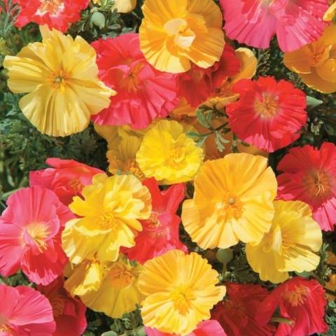 Kríky Escholzia sú pokryté početnými jednotlivými kvetmi v tvare misy. Veľkosť kvetov v priemere dosahuje 8 - 10 cm, v závislosti od odrody. Jednoduché, dvojité, biele, matné, oranžové, červené alebo žlté - vzhľad a farba každej odrody sú úžasné!